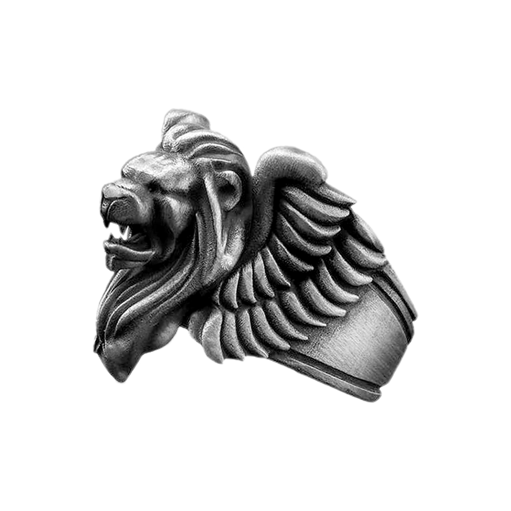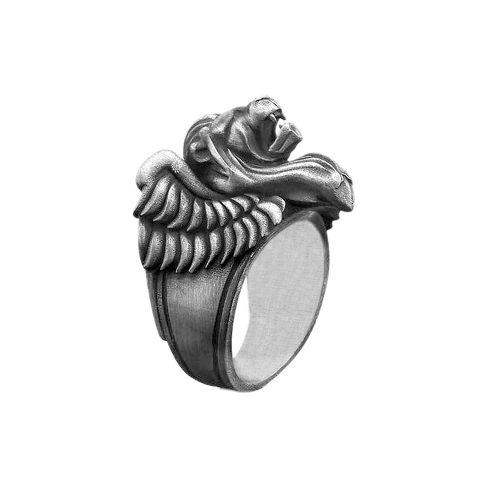 Solid Sterling Silver Lion’s Of Venice Baroque Motif Ring