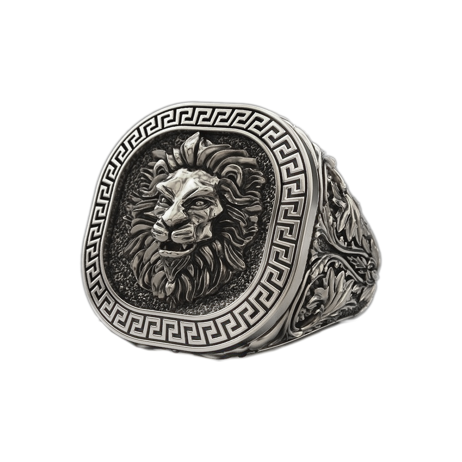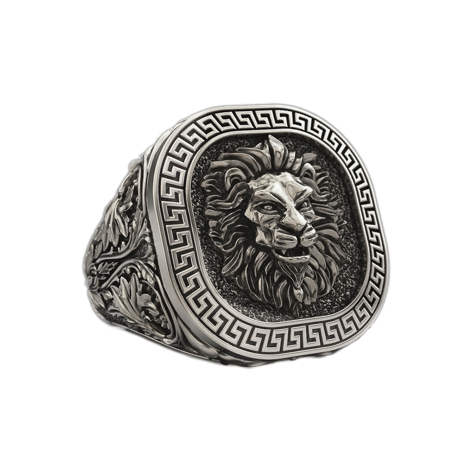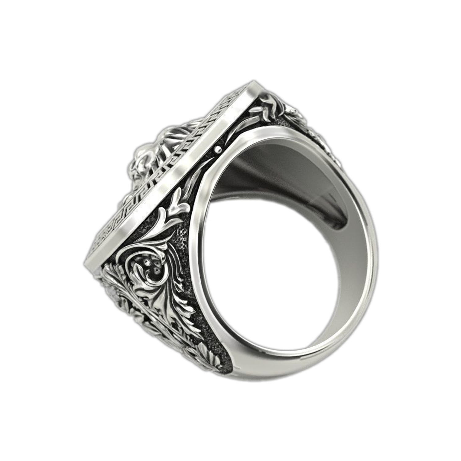 Solid Sterling Silver Lion’s Head Ivy Flower Motif Ring