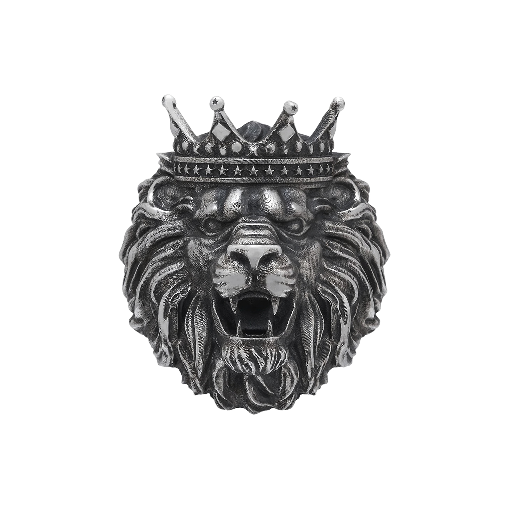 Solid Sterling Silver Lion’s Head King Crown Motif Ring