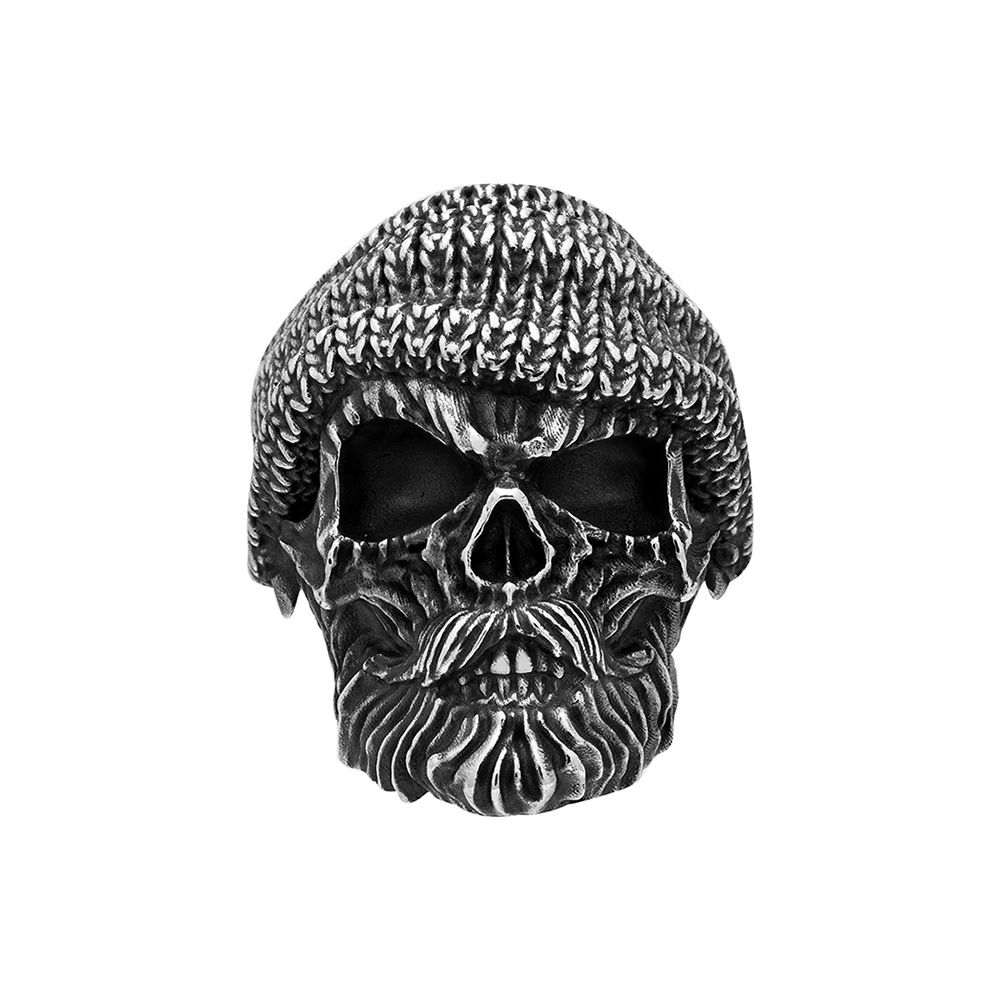 Solid Sterling Silver 950K Signet and Hallmarked (more solid sterling condent then 925) Huge and Heavy Skull with beanie, Hipster, Moustache and Bearded of Gothic style textured highly detailed and patterned handcrafted ring with realistic and fantastic artly detailed. App.20.5 grams, available in all ring sizes. Length of the Head top band width is app. 30.50mm. Beautiful handmade ring that you will love to wear it daily. Please pay attention to item weights because if the same item is lighter ( That is selling in some platforms or sellers ), the lighter items are either made thinner and lower quality, or they are made of a material with a different density and are coated gilded or plated with silver. Gold and Silver are minerals with high density. It is not one of the cheaply made east asian items that glass and imitation stones are selling as genuine natural diamonds and natural gemstones or plated and gildet metals are selling as Sterling or solid silver or Solid Gold. It is real genuine solid sterling silver 950K ( Nickel Free ) handcrafted artisan item.