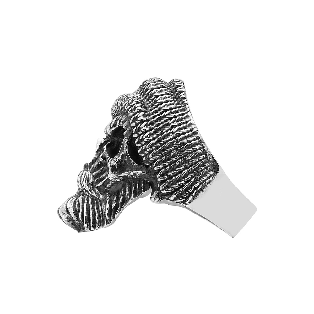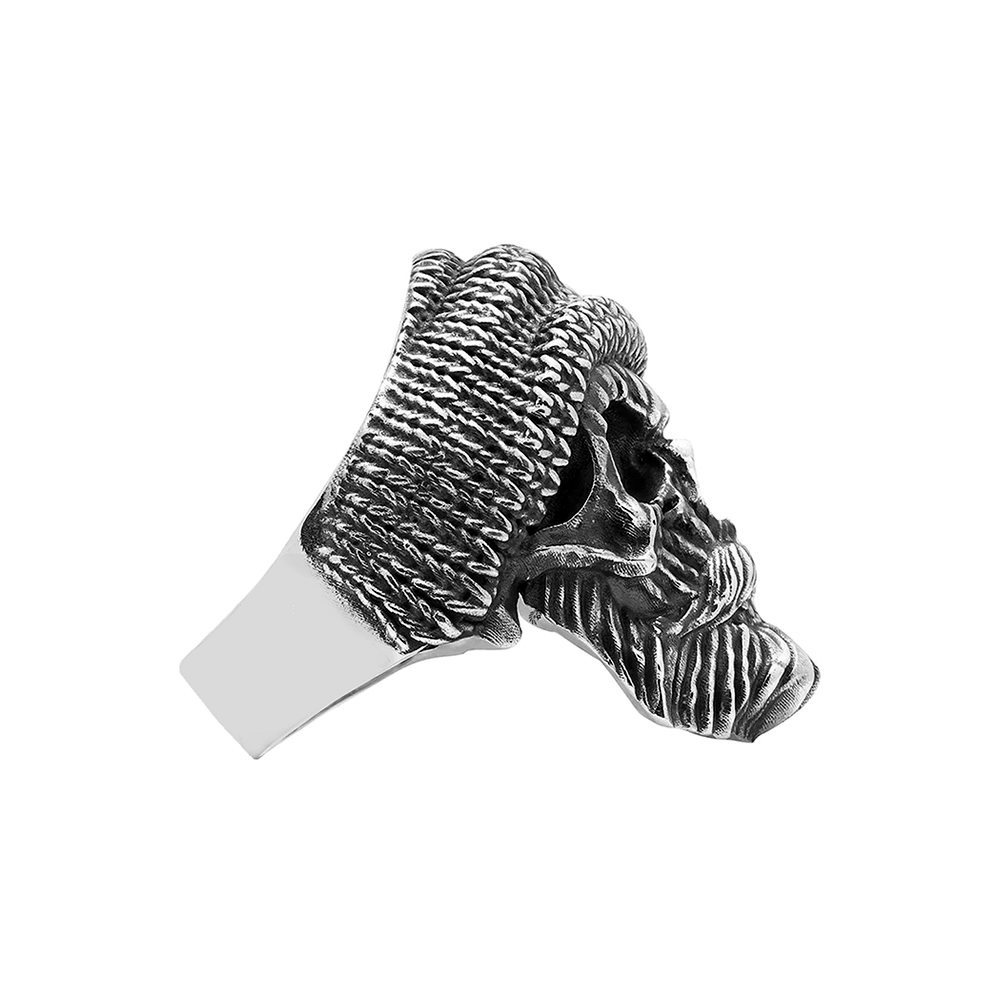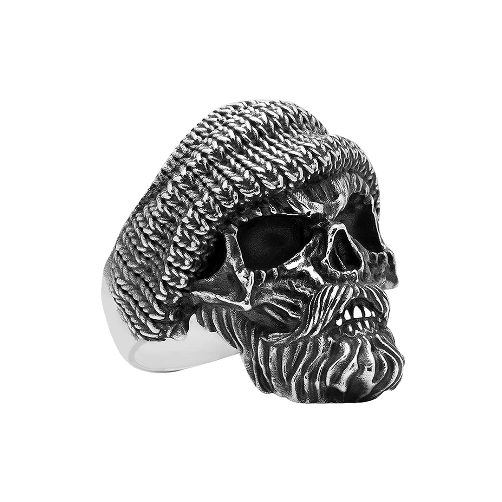Solid Sterling Silver Beanie Bearded Skull Gothic Motif Biker Ring