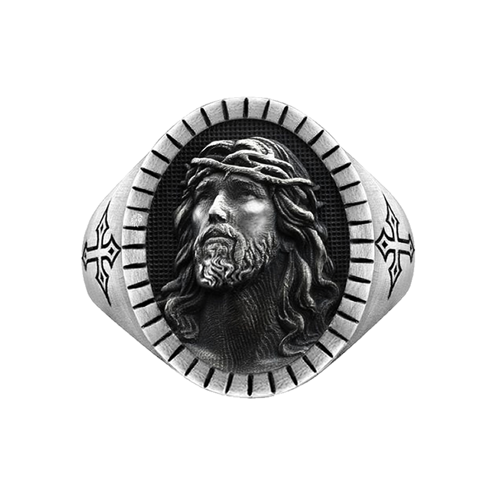 - The Jesus Crucifixion Cross Christian Patterned Ring