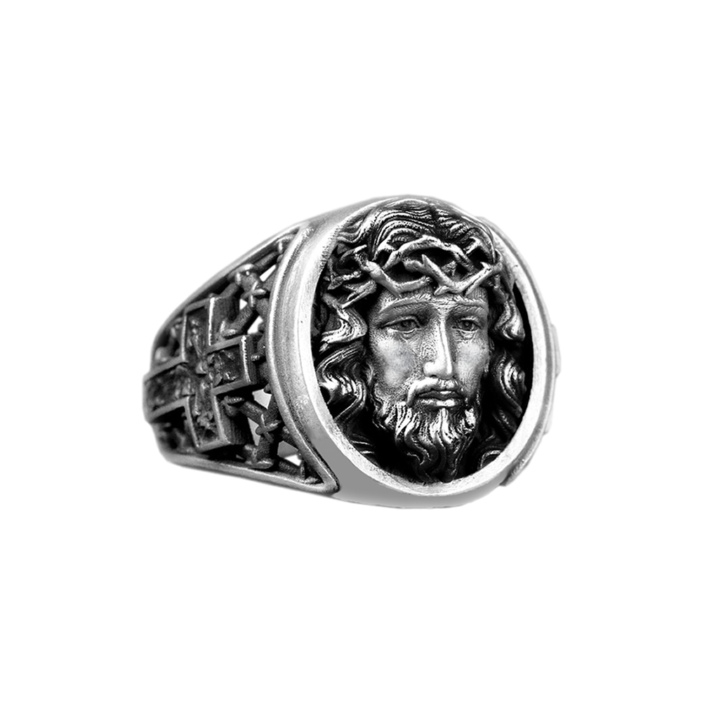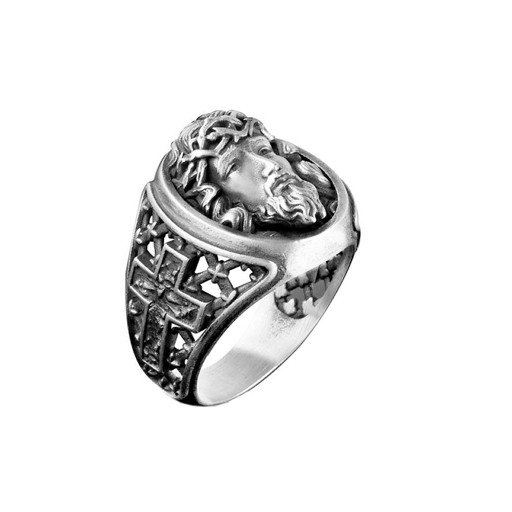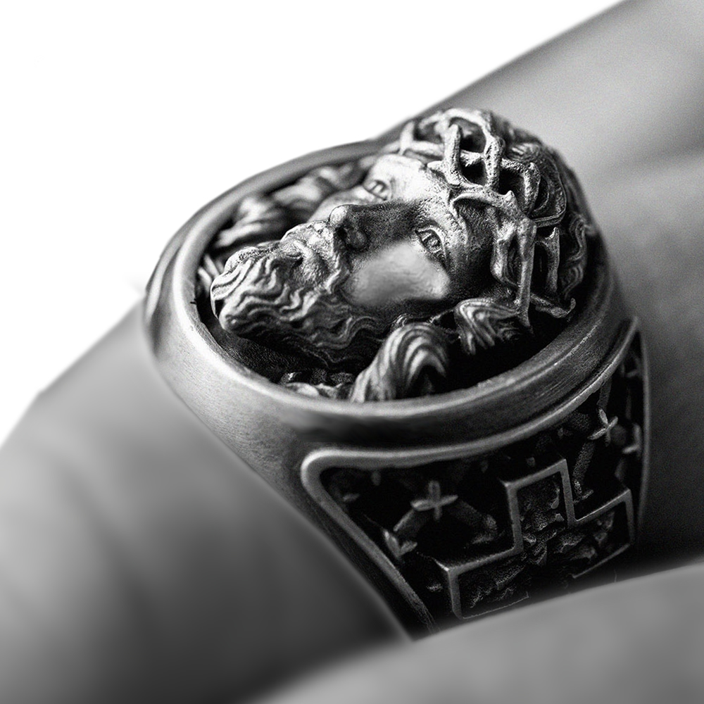 Solid Sterling Silver 950K Signet and Hallmarked (more solid sterling condent then 925) Huge and Heavy Christian’s the Jesus’s Head Crown Of Thorns, Christ Cross of Sculptures style textured highly detailed and patterned handcrafted ring, App.19.5 grams, available in all ring sizes. Length of the Head top band width is app. 25.50mm. Beautiful handmade ring that you will love to wear it daily. Please pay attention to item weights because if the same item is lighter ( That is selling in some platforms or sellers ), the lighter items are either made thinner and lower quality, or they are made of a material with a different density and are coated gilded or plated with silver. Gold and Silver are minerals with high density. It is not one of the cheaply made east asian items that glass and imitation stones are selling as genuine natural diamonds and natural gemstones or plated and gildet metals are selling as Sterling or solid silver or Solid Gold. It is real genuine solid sterling silver 950K ( Nickel Free ) handcrafted artisan item.