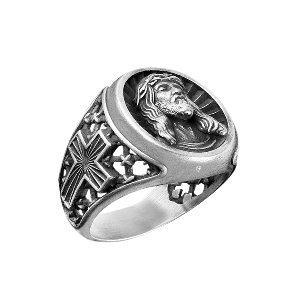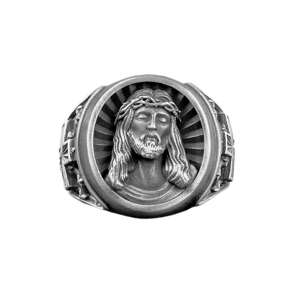 Solid Sterling Silver 950K Signet and Hallmarked (more solid sterling condent then 925) Huge and Heavy Christian’s the Jesus’s Head Crown Of Thorns, Christ Cross of Sculptures style textured highly detailed and patterned handcrafted ring, App.19.5 grams, available in all ring sizes. Length of the Head top band width is app. 25.50mm. Beautiful handmade ring that you will love to wear it daily. Please pay attention to item weights because if the same item is lighter ( That is selling in some platforms or sellers ), the lighter items are either made thinner and lower quality, or they are made of a material with a different density and are coated gilded or plated with silver. Gold and Silver are minerals with high density. It is not one of the cheaply made east asian items that glass and imitation stones are selling as genuine natural diamonds and natural gemstones or plated and gildet metals are selling as Sterling or solid silver or Solid Gold. It is real genuine solid sterling silver 950K ( Nickel Free ) handcrafted artisan item.