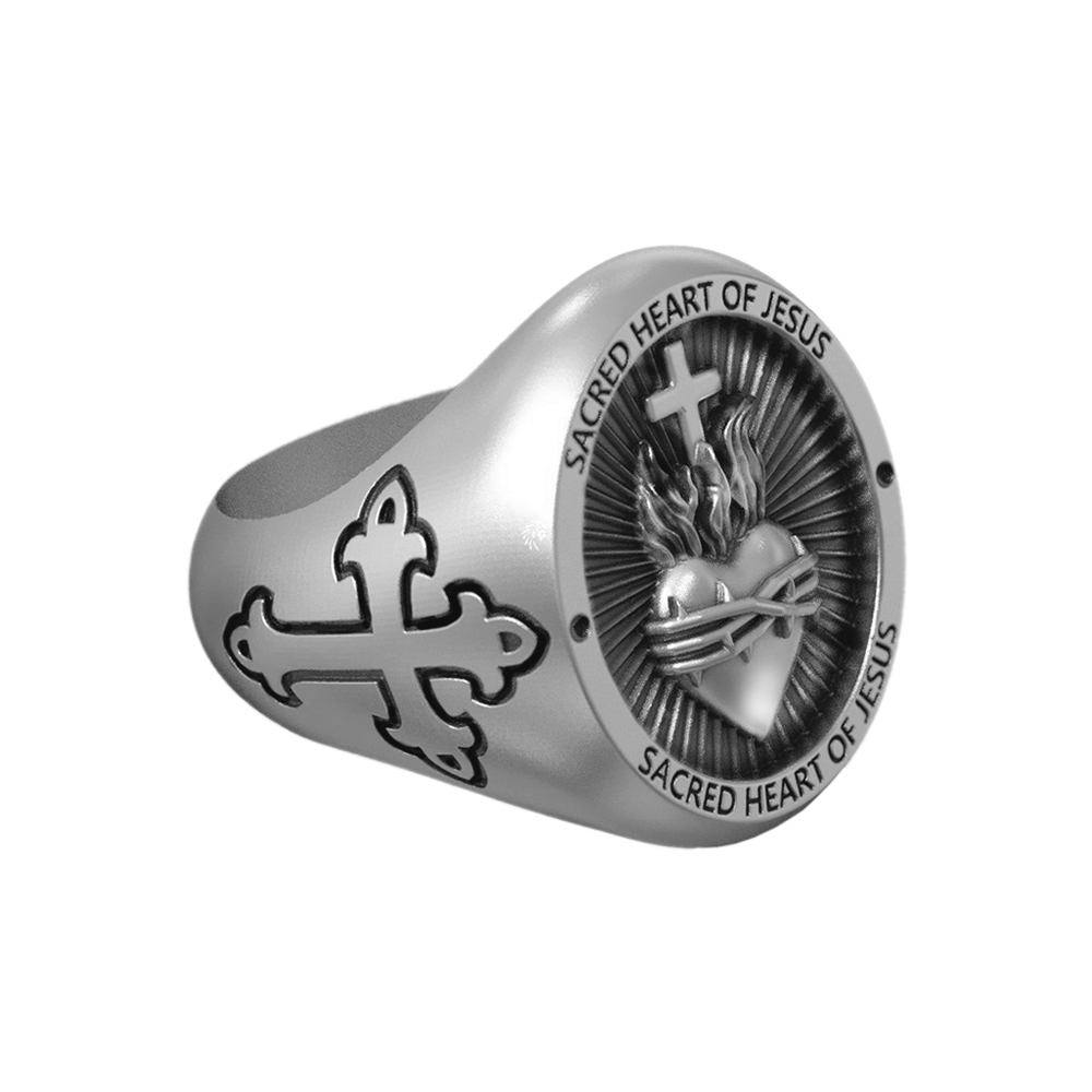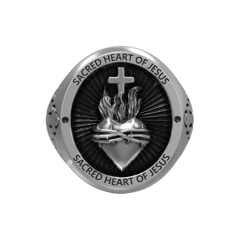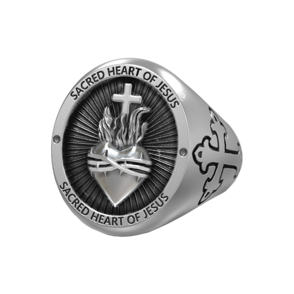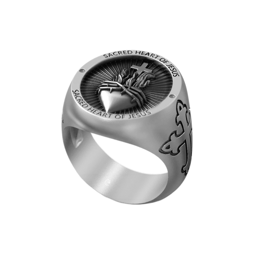 Solid Sterling Silver the Sacred Heart Of Jesus, Cross Christian’s Faith Ring