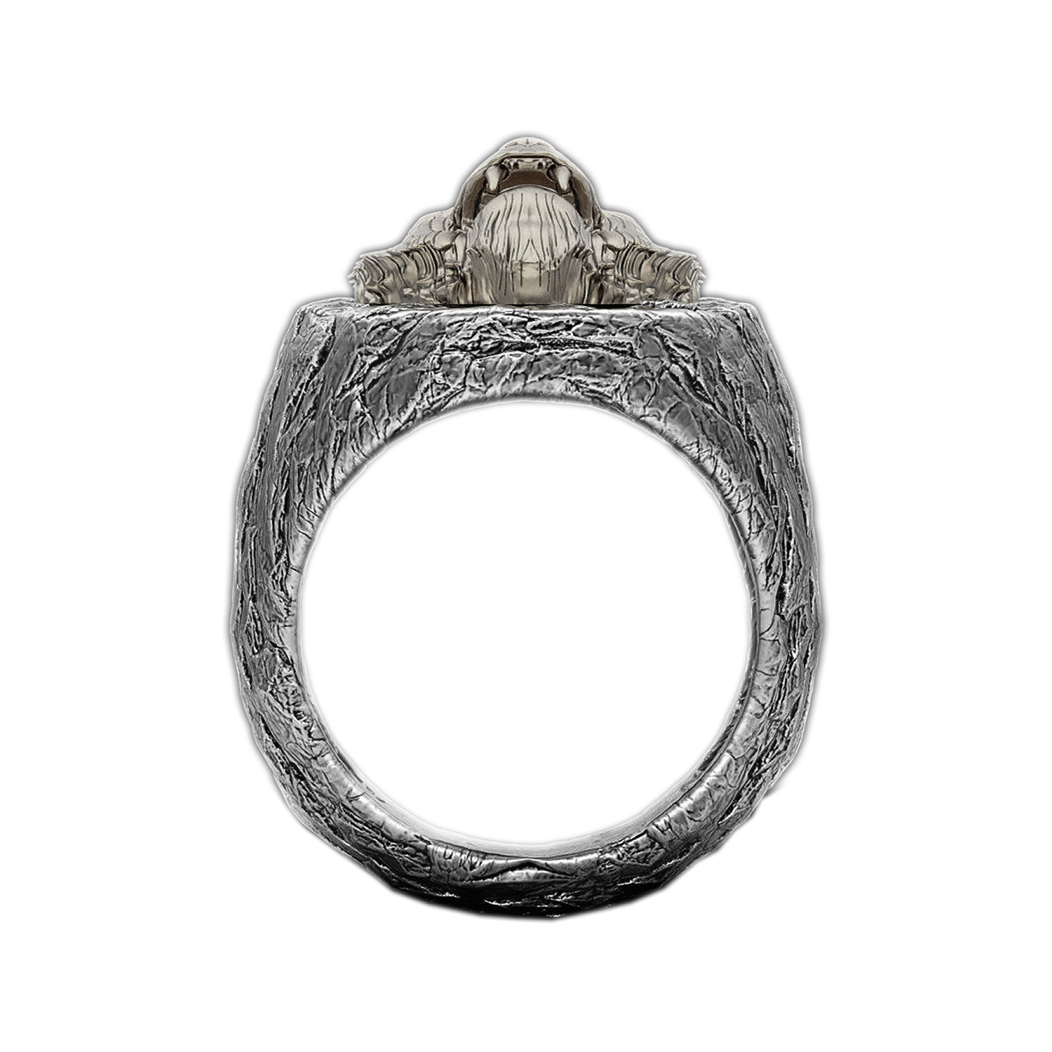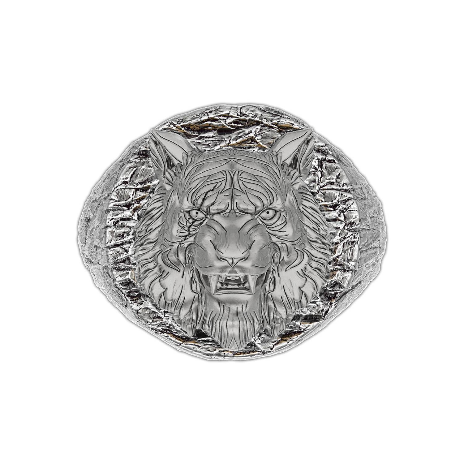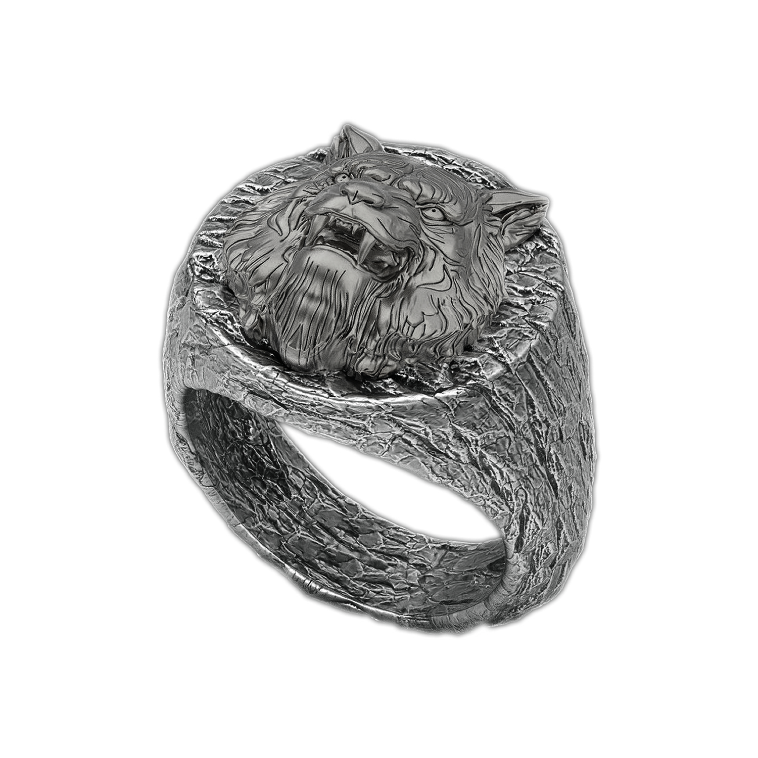 Solid Sterling Silver Tiger’s Head Rock Motif Ring